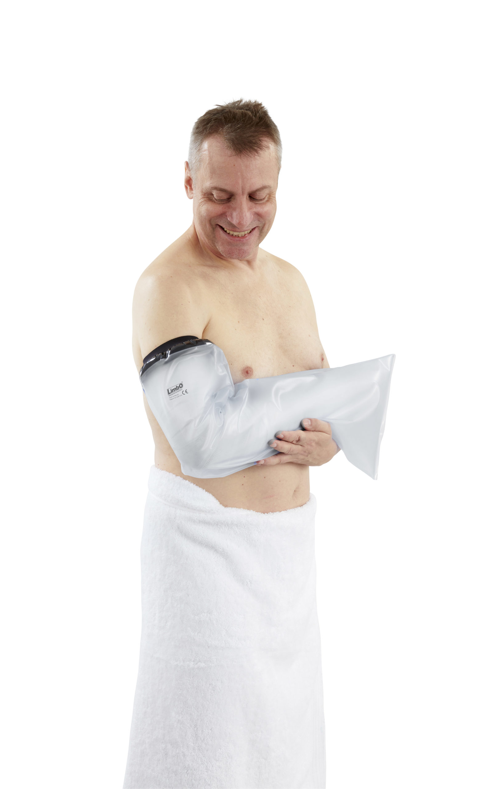 Der LimbO Badeschutz ist wasserdicht und bietet optimalen Nässeschutz beim Duschen und Baden. Der ganze Arm wird geschützt durch die Versiegelung am Oberarm, direkt über dem Gips oder Verband. Gemessen wird der Armumfang ca. 2cm über dem Gips.